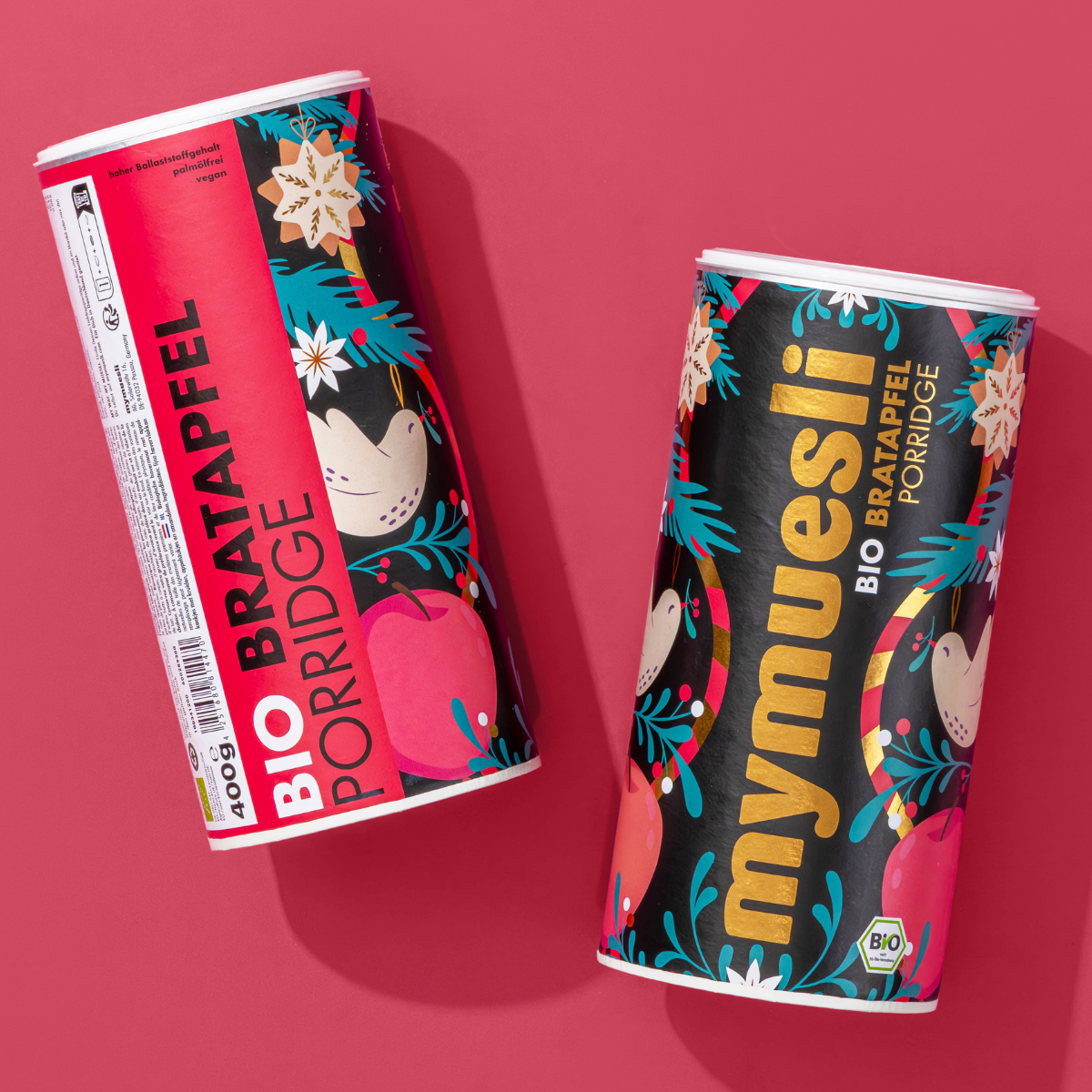 feine Haferflocken (59%), Bratapfelkekse mit Gewürzmischung (12%) (Weizenmehl, Rohrohrzucker, Sonnenblumenöl, Weizenstärke, Apfelpulver, gehackte Weinbeeren, Zuckerrohrmelasse, Gewürzmischung (Vollrohrzucker, Kokosblütenzucker, Zimt, Tonkabohne, Vanille, Pfeffer, Orange, Zitrone, Nelke), Meersalz*, Backtriebmittel: Natriumhydrogencarbonat*, natürliches Bourbon-Vanillearoma, Karamellzuckersirup, Antioxidationsmittel: Rosmarinextrakt), getrocknete Apfelstücke (11%), Rosinen, geröstete Mandeln (6%), Zimt, Sonnenblumenöl. Kann Spuren von anderen Schalenfrüchten, Erdnüssen, Soja, Lupinen, Eiern, Sesamsamen und Milch enthalten.
