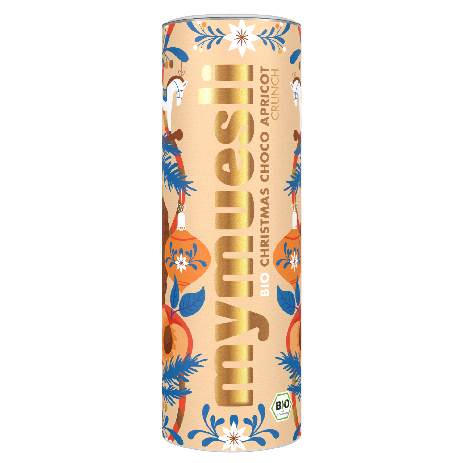 Kakao-Quinoa-Knusperstückchen (30%) (Haferflocken, Reissirup, Haferschrot, Sonnenblumenöl, gepuffter Quinoa, Kakaopulver, Reismehl, Gerstenmalzmehl, Meersalz*), Haferknusperstückchen mit Lebkuchengewürz (28%) (Hafervollkornflocken, Rohrzucker, Sonnenblumenöl, Reissirup, Reismehl, Kakaopulver, Kakaomasse, Gerstenmalzmehl, Kokosraspeln, Meersalz*, Kakaobutter, Zimt, gemahlener Anis, Nelken, Koriander, Kardamom), Haferflocken, Bratapfelkekse mit Gewürzmischung (9%) (Weizenmehl, Rohrohrzucker, Sonnenblumenöl, Weizenstärke, Apfelpulver, gehackte Weinbeeren, Zuckerrohrmelasse, Gewürzmischung (Vollrohrzucker, Kokosblütenzucker, Zimt, Tonkabohne, Vanille, Pfeffer, Orange, Zitrone, Nelke), Meersalz*, Backtriebmittel: Natriumhydrogencarbonat*, natürliches Bourbon-Vanillearoma, Karamellzuckersirup, Antioxidationsmittel: Rosmarinextrakt), getrocknete Aprikosenwürfel (6%), weiße Schokolade (3%) (Rohrohrzucker, Kakaobutter, Vollmilchpulver), geröstetes Getreide mit Kakao (Reismehl, Rohrohrzucker, Kakaopulver, Weizenmehl, Gerstenmehl, Hafermehl, Gerstenmalz), getrocknete Cranberries (3%), Zucker, Reismehl, Sonnenblumenöl.